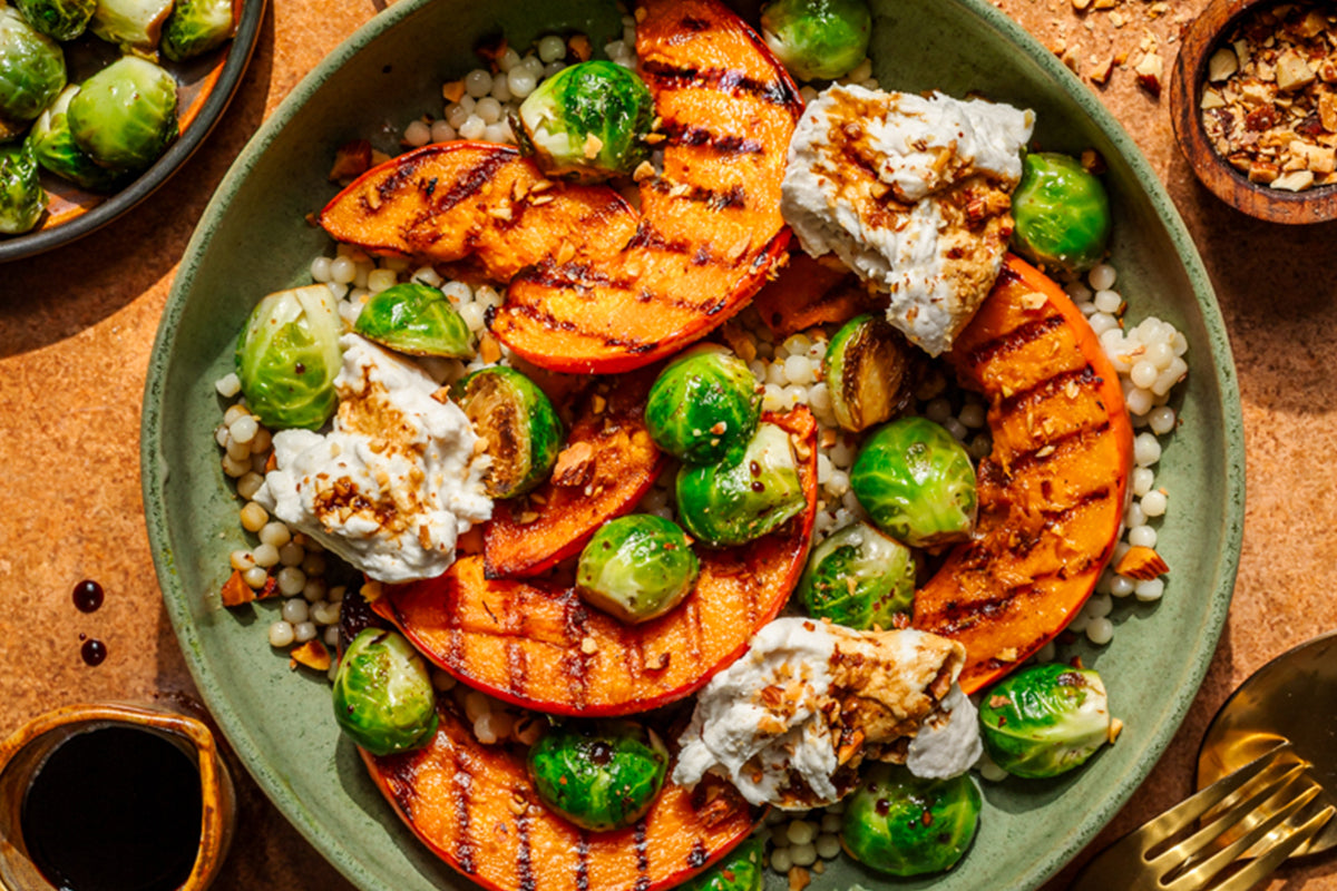 Autumn Salad with Baked Pumpkin, Caramelized Brussels Sprouts