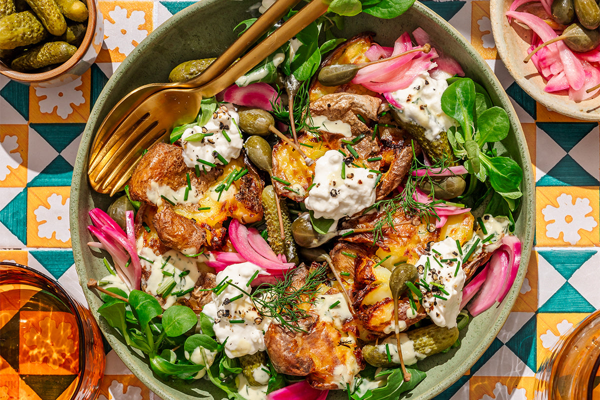 Summery Smashed Potato Salad with Dreamfarm Stracciatella